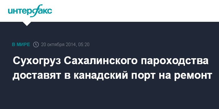Москва. 20 октября. INTERFAX.RU - Сухогруз "Симушир" Сахалинского морского пароходства (СахМП), обездвиженный из-за остановки главного двигателя возле тихоокеанского берега Канады, вечером в понедельник доставят на ремонт в канадский порт Принс-Руперт.