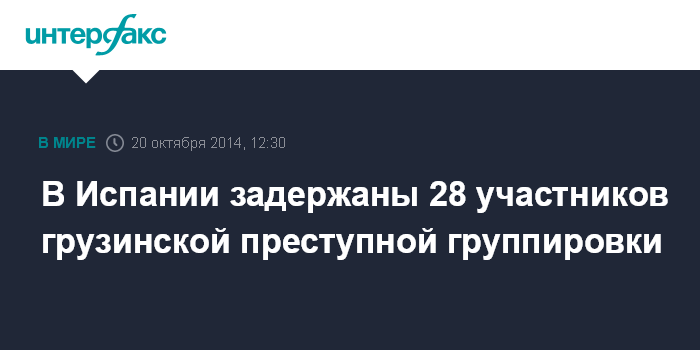 Москва. 20 октября. INTERFAX.RU - В Испании полиция провела масштабную спецоперацию, в ходе которой были задержаны около трех десятков человек, большинство из которых, как сообщают в понедельник грузинские СМИ, являются выходцами из Грузии. Всего было задержано 28 человек.
