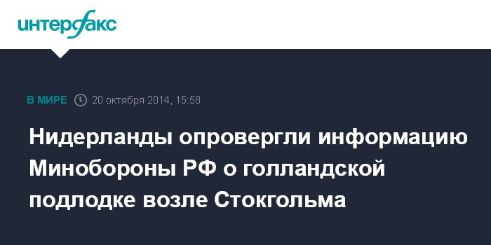 Москва. 20 октября. INTERFAX.RU - Неопознанный подводный объект, который был замечен возле Стокгольма, не может быть нидерландской подводной лодкой, сообщили BBC News в министерстве обороны Нидерландов.