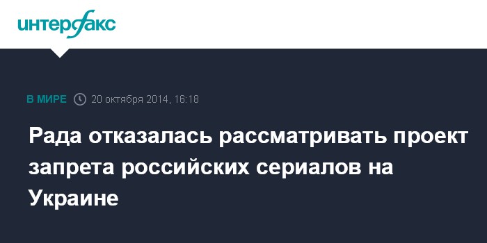 Москва. 20 октября. INTERFAX.RU - Проект запрета ряда российских сериалов на Украине не удалось включить в повестку дня Верховной рады, так как он не собрал необходимого числа голосов, сообщает корреспондент "Интерфакса".