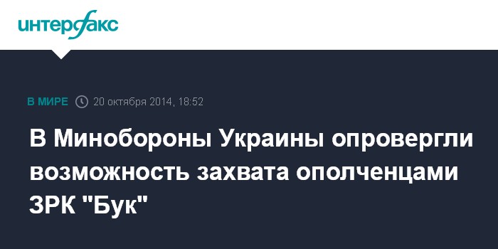 Москва. 20 октября. INTERFAX.RU - В Министерстве обороны Украины заявили, что малайзийский самолет, который 17 июля следовал рейсом MH17 над Донецкой областью, не мог быть сбит с помощью зенитного ракетного комплекса "Бук", захваченного ополченцами в одной из украинских воинских частей.
