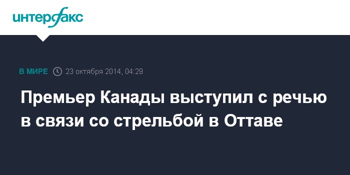 Москва. 23 октября. INTERFAX.RU - Премьер-министр Канады Стивен Харпер вечером в среду выступил перед нацией с речью, посвященной произошедшей ранее сегодня стрельбой у здания парламента страны в Оттаве, сообщает местное агентство CBC.