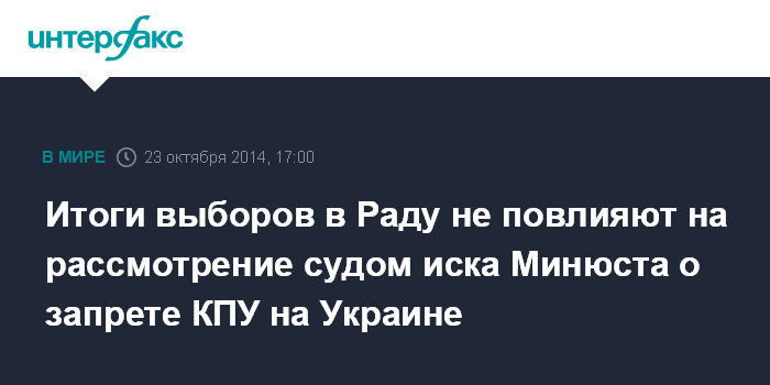 Москва. 23 октября. INTERFAX.RU - Судебный иск министерства юстиции Украины об отмене регистрации Коммунистической партии Украины будет рассмотрен независимо от того, попадет ли эта партия в новый состав парламента или нет, сообщил глава Минюста Павел Петренко.