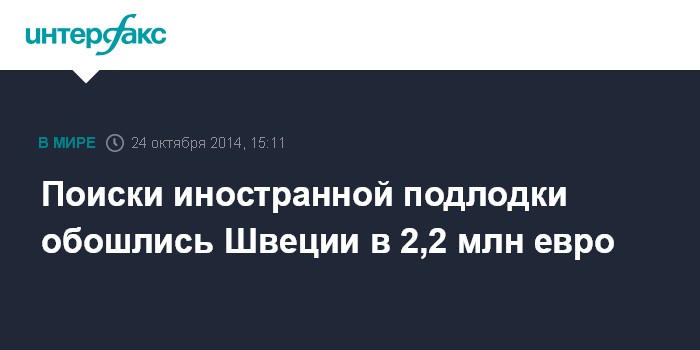 Москва. 24 октября. INTERFAX.RU - Стоимость операции по поиску неизвестной подводной лодки в территориальных водах Швеции составила 20 млн крон или 2,2 млн евро, сообщил командующий Военно-морскими силами страны контр-адмирал Андерс Гренстадт на пресс-конференции в пятницу.