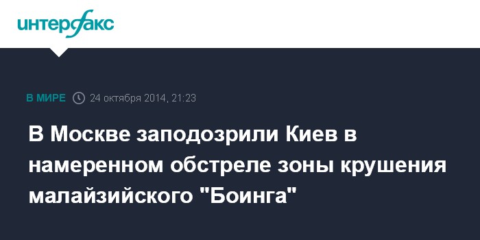 Москва. 24 октября. INTERFAX.RU - Зона крушения малайзийского "Боинга" после трагедии обстреливалась со стороны украинских силовиков, и в Москве это считают неслучайным, заявил постпред РФ при ООН Виталий Чуркин.