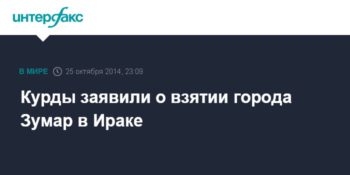 Москва. 25 октября. INTERFAX.RU - Отряды курдских повстанцев заявили о взятии стратегически важного города Зумар на севере Ирака. Об этом вечером в субботу сообщает BBC.