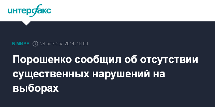 Москва. 26 октября. INTERFAX.RU - Президент Украины Петр Порошенко констатирует, что парламентские выборы в стране проходят без существенных нарушений. "Сегодня выборы проходят без существенных нарушений, и у нас проходят выборы, которые отвечают всем европейским демократическим стандартам", - сказал он журналистам после голосования на избирательном участке в Киеве.
