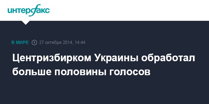 Москва. 27 октября. INTERFAX.RU - После обработки 50,08% протоколов, полученных Центризбиркомом от избирательных комиссий, на прошедших в воскресенье выборах в Верховную Раду Украины "Народный фронт" набирает 21,61% голосов, "Блок Петра Порошенко" - 21,45% голосов избирателей.