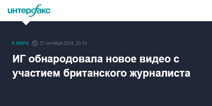 Москва. 27 октября. INTERFAX.RU - Группировка "Исламское государство" опубликовала в интернете новую видеозапись предположительно с участием британского журналиста Джона Кэнтли, сообщил в понедельник телеканал SkyNews.