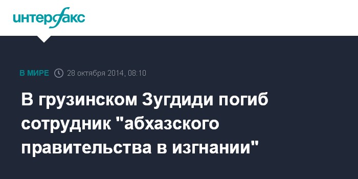 Москва. 28 октября. INTERFAX.RU - В результате взрыва в здании в городе Зугдиди, в котором функционирует служба безопасности "абхазского правительства в изгнании", погиб начальник одного из ее департаментов.