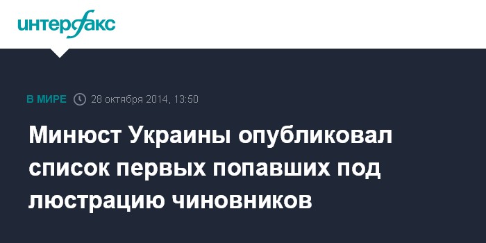Москва. 28 октября. INTERFAX.RU - Министерство юстиции Украины опубликовало список из 179 бывших чиновников, в отношении которых уже применен закон "Об очищении власти".