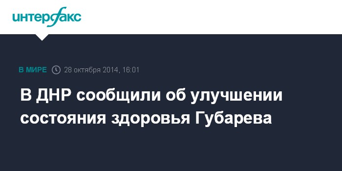 В ДНР сообщили об улучшении состояния здоровья Губарева