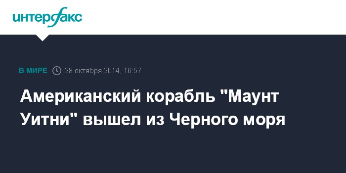 Москва. 28 октября. INTERFAX.RU - Штабной корабль 6-го флота США "Маунт Уитни", находившийся в Черном море с 10 октября, во вторник покинул его акваторию, сообщили "Интерфаксу" в Главном штабе ВМФ России.