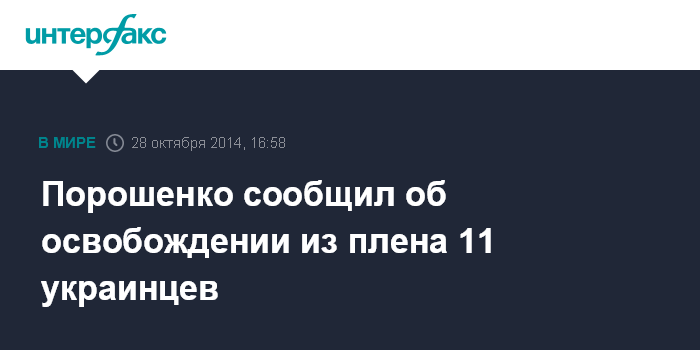 Москва. 28 октября. INTERFAX.RU - Президент Украины Петр Порошенко сообщил об освобождении во вторник из плена 11 человек.