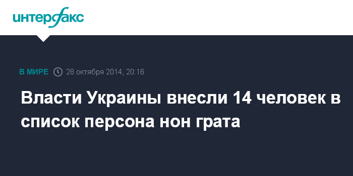 Москва. 28 октября. INTERFAX.RU - Кабинет министров Украины одобрил список из 14 человек, которые стали персона нон грата в связи с их "антиукраинской позицией", однако разглашать этот список по международным нормам власти страны не будут, заявил министр культуры Украины Евгений Нищук.