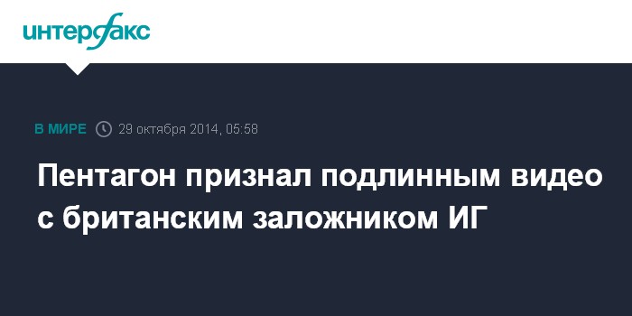 Москва. 29 октября. INTERFAX.RU - Видео с заявлением британского журналиста, взятого в заложники боевиками "Исламского государства" (ИГ) в Сирии, является аутентичным, заявил журналистам представитель Пентагона адмирал Джон Кирби.