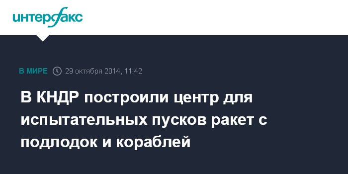 Москва. 29 октября. INTERFAX.RU - Северокорейские специалисты соорудили объект для осуществления испытательных пусков баллистических ракет с субмарин и кораблей, сообщают ученые из американо-южнокорейского университета Джонса Хопкинса.