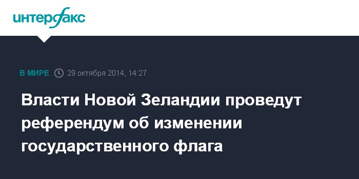 Москва. 29 октября. INTERFAX.RU - Премьер-министр Новой Зеландии Джон Кей в среду объявил о планах проведения двух общенациональных референдумов по вопросу смены государственного флага
