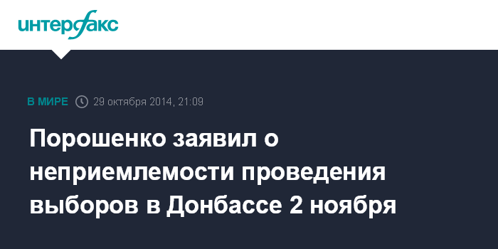 Москва. 29 октября. INTERFAX.RU - Президент Европейского парламента Мартин Шульц и президент Украины Петр Порошенко заявляют о неприемлемости проведения выборов в Донецкой и Луганской областях, так как это противоречит украинскому законодательству и Минским договоренностям, сообщает пресс-служба Порошенко.