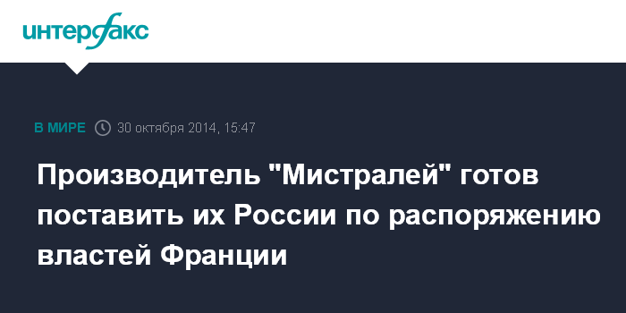 Производитель "Мистралей" готов поставить их России по распоряжению властей Франции