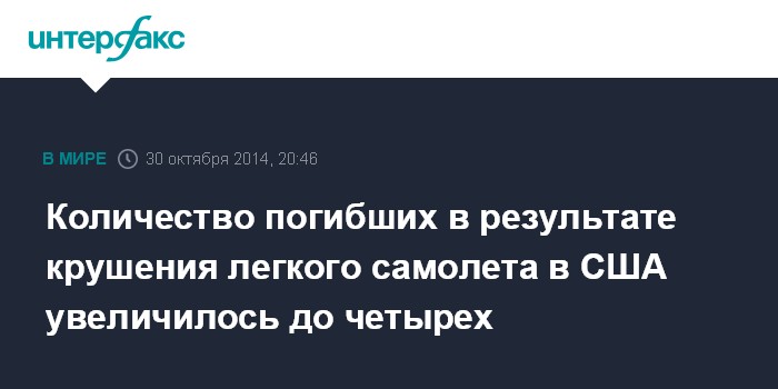 Количество погибших в результате крушения легкого самолета в США увеличилось до четырех