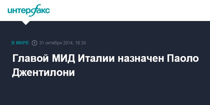 Москва. 31 октября. INTERFAX.RU - Паоло Джентилони в пятницу назначен главой МИД Италии, сообщают римские СМИ.