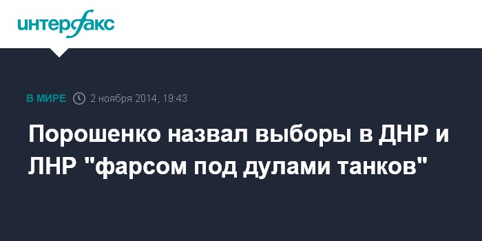 По словам президента Украины, которые цитирует его пресс-служба, происходящее на юго-востоке страны является "фарсом под дулами танков и автоматов". Порошенко заявил, что Украина не признает этих выборов.