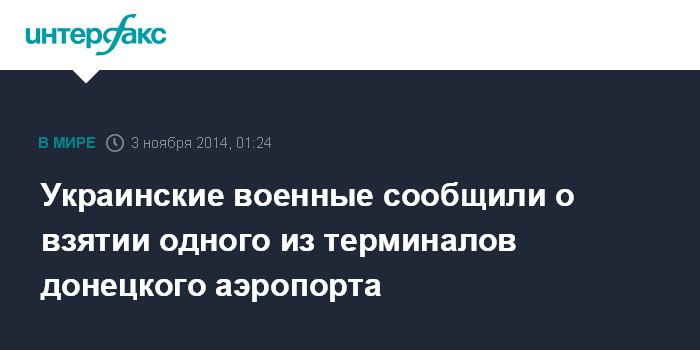 Москва. 3 ноября. INTERFAX.RU - Украинские военнослужащие 2 ноября взяли под свой контроль один из терминалов Донецкого аэропорта, занятый ранее силами ополчения, сообщает "5 канал" со ссылкой на руководителя пресс-центра силовой операции в Донбассе Владислава Селезнева.