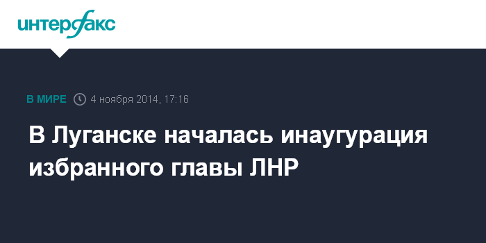 Москва. 4 ноября. INTERFAX.RU - Инаугурация избранного главы самопровозглашенной "Луганской народной республики" (ЛНР) Игоря Плотницкого началась во вторник вечером в Луганске.
