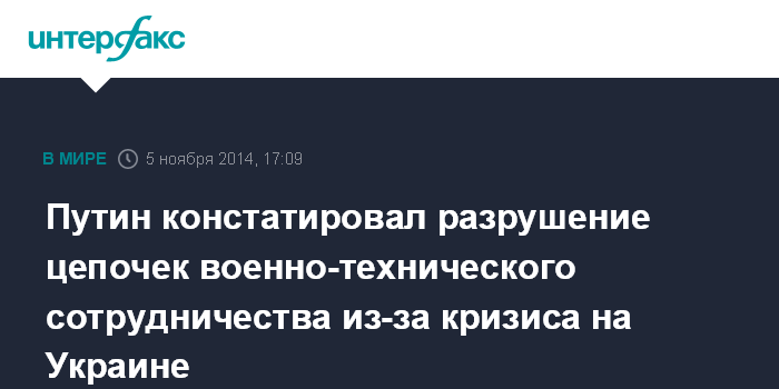 Путин констатировал разрушение цепочек военно-технического сотрудничества из-за кризиса на Украине