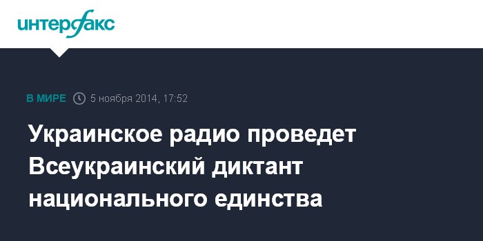 Москва. 5 ноября. INTERFAX.RU - В канун Дня письменности и языка, который отмечается на Украине 7 ноября, и в рамках празднования 90-летия Украинского радио, состоится 14-ый всеукраинский диктант национального единства, сообщает пресс-служба Государственного комитета телевидения и радиовещания.
