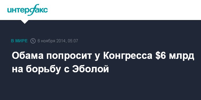 Москва. 6 ноября. INTERFAX.RU - Президент США Барак Обама намерен попросить у Конгресса $6,2 миллиарда на борьбу с распространением вируса Эбола в Западной Африке, сообщила BBC News.