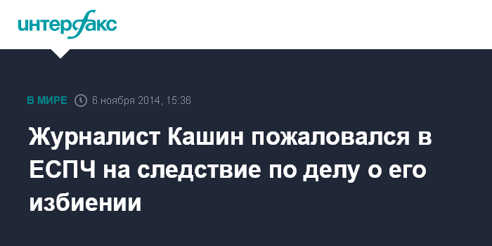 Москва. 6 ноября. INTERFAX.RU - Журналист Олег Кашин обратился с жалобой в Европейский суд по правам человека на бездействие следователей, которые расследуют дело о его избиении в 2010 году, заявил его защитник Йонко Грозев.