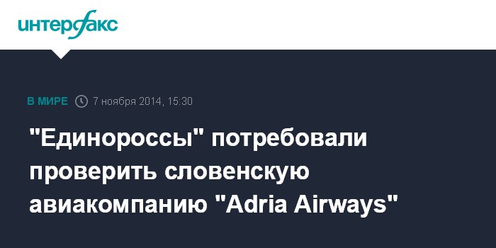 "Единороссы" потребовали проверить словенскую авиакомпанию "Adria Airways"