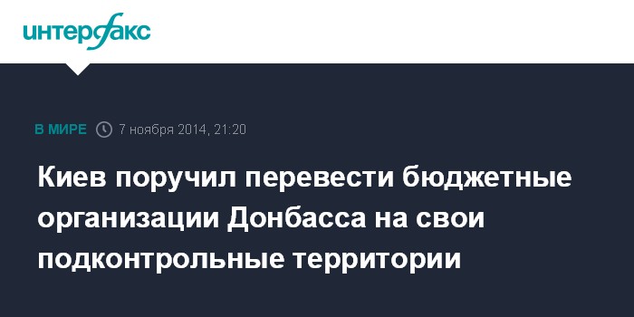Москва. 7 ноября. INTERFAX.RU - Кабинет министров Украины поручил до 1 декабря перевести все бюджетные учреждения и предприятия с территорий, которые контролируются ополчением в Луганской и Донецкой областях, на подконтрольные Киеву территории.