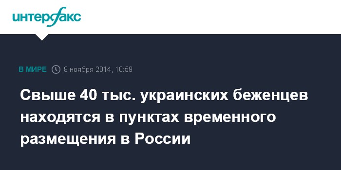 Москва. 8 ноября. INTERFAX.RU - Более 40 тысяч украинских беженцев остаются в пунктах временного размещения (ПВР) в России, сообщил официальный представитель МЧС Александр Дробышевский.