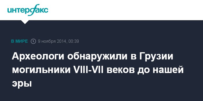 Москва. 8 ноября. INTERFAX.RU - Археологи в ходе превентивных археологических работ в районе села Гантиади в Дманисском районе Грузии обнаружили могильники VIII-VII веков до нашей эры. Об этом сообщает пресс-служба Национального музея Грузии.