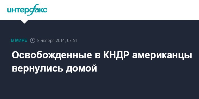 Москва. 9 ноября. INTERFAX.RU - Граждане США Кеннет Бэй и Мэттью Миллер, освобожденные в Северной Корее из-под арестов, в субботу вечером по местному времени (утро воскресенья по московскому времени) вернулись на родину, сообщает американский телеканал CNN.
