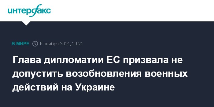 Глава дипломатии ЕС призвала не допустить возобновления военных действий на Украине