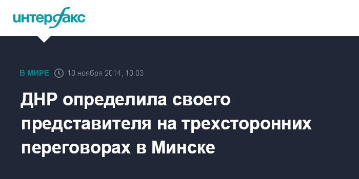 ДНР определила своего представителя на трехсторонних переговорах в Минске