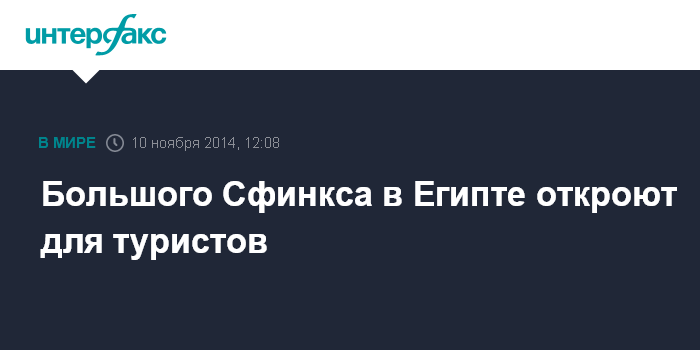 Москва. 10 ноября. INTERFAX.RU - Власти Египта сообщили, что знаменитый Сфинкс на плато Гиза откроется для туристов после четырёхлетней реставрации, сообщает Al Arabiya.