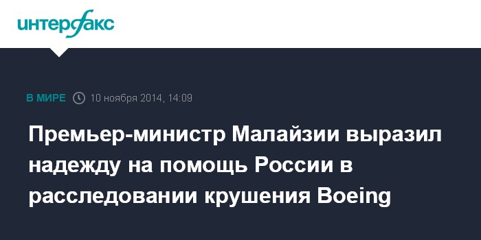 В связи с этим он рассчитывает на помощь России. "Мы надеемся, что вы поможете нам разобраться в причинах того, что произошло с авиалайнером", - сказал малазийский премьер.