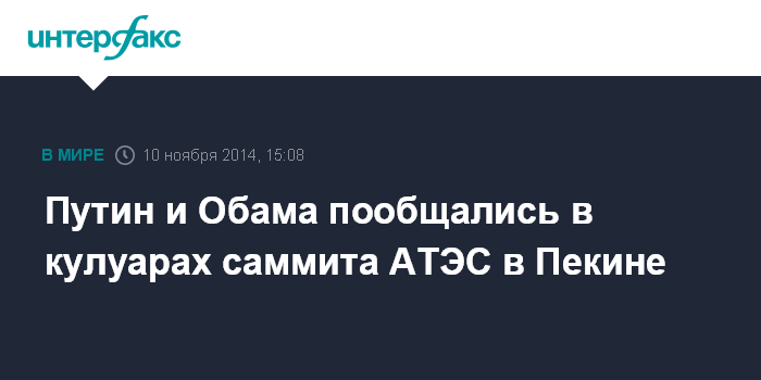 Москва. 10 ноября. INTERFAX.RU - Президент РФ Владимир Путин и президент США Барак Обама провели неформальную беседу в кулуарах проходящего в Пекине саммита АТЭС.