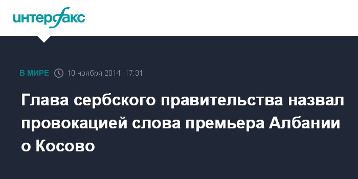 Москва. 10 ноября. INTERFAX.RU - Премьер-министр Сербии Александр Вучич счел провокационным заявление своего албанского коллеги Эди Рама о независимости Косово, передает в понедельник международное французское радио RFI.