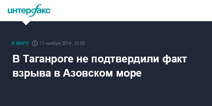 Москва. 11 ноября. INTERFAX.RU - Служба управления движения судов Таганрога, ссылаясь на экипажи теплоходов, не подтверждает факт взрыва в Азовском море в районе Мариуполя во вторник.