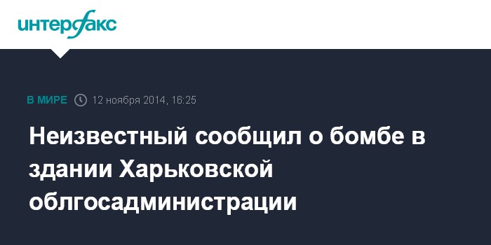 Москва. 12 ноября. INTERFAX.RU - В Харькове в здании, где расположены областная госадминистрация, облсовет и часть подразделений горсовета, ищут взрывчатку.