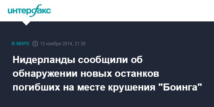 Москва. 12 ноября. INTERFAX.RU - Эксперты обнаружили новые останки погибших на месте крушения самолета "Боинг-777" Малазийских авиалиний, сообщается на сайте нидерландского правительства.