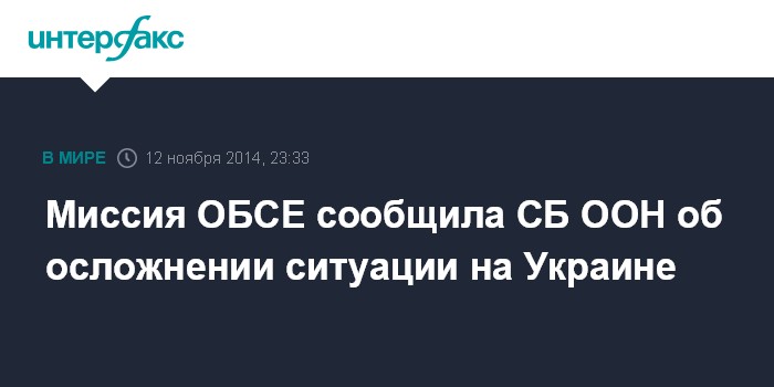 Москва. 12 ноября. INTERFAX.RU - Глава мониторинговой миссии ОБСЕ на Украине Эртугуль Апакан, выступая в среду по телемосту на заседании СБ ООН, приветствовал минские соглашения, но отметил, что в последние дни ситуация осложнилась.