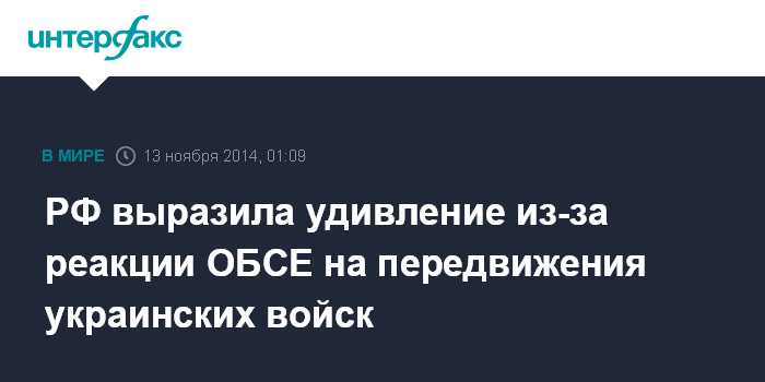 РФ выразила удивление из-за реакции ОБСЕ на передвижения украинских войск