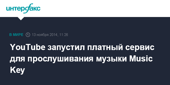 Москва. 13 ноября. INTERFAX.RU - Видеохостинг YouTube запустил платный сервис для прослушивания музыки Music Key. Об этом говорится в блоге компании.